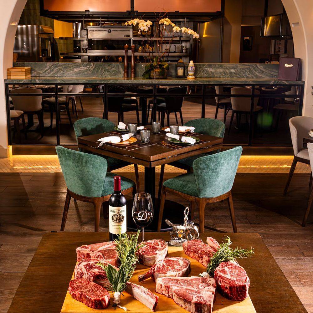 The venue offers a classic steakhouse environment with a dedicated bar area and a dining room suited for special occasions. A Chef’s counter provides an intimate tasting experience while the bar offers a more casual setting with televisions for watching sports.