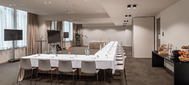 U kunt gemakkelijk diverse sessies organiseren dankzij de acht beschikbare zalen, die plaats bieden aan 2 tot 200 deelnemers. Elke zaal kan in verschillende opstellingen worden ingericht, zoals theater, U-vorm, banket of conferentie, afhankelijk van uw specifieke behoeften. Bovendien biedt het etablissement accommodatie met 154 kamers, waaronder luxe suites.